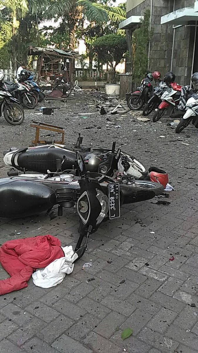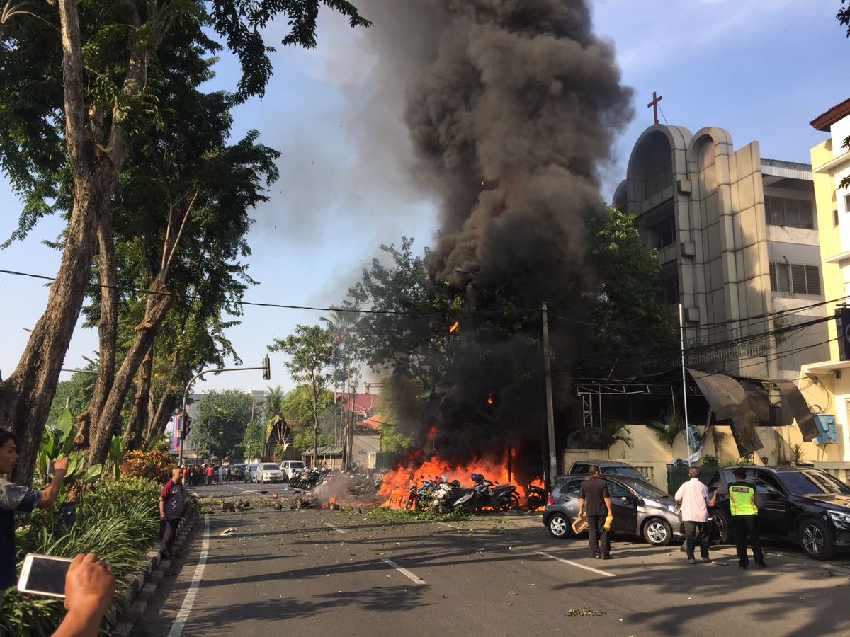 عاجل : صور من تفجير الكنائس في أندونسيا
